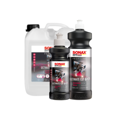 - Sonax - PROFILINE UltimateCut "6+/3" Schleif-Politur (bis P1000) - Kraftvolle Schleifpolitur für schnelle Ergebnisse und große Flächen 250 ml, 1 Liter, 5 Liter, 2x 250 ml Set, 3x 250 ml Set, 2x 1 Liter Set, 3x 1 Liter SetAuf Lager (16 Stück)Ab 20,48€- 31,50€Inhalt: 250mlGrundpreis (81,92€ / l)Niedrigster Preis der letzten 30 Tage: 25,99€Nicht verfügbar
