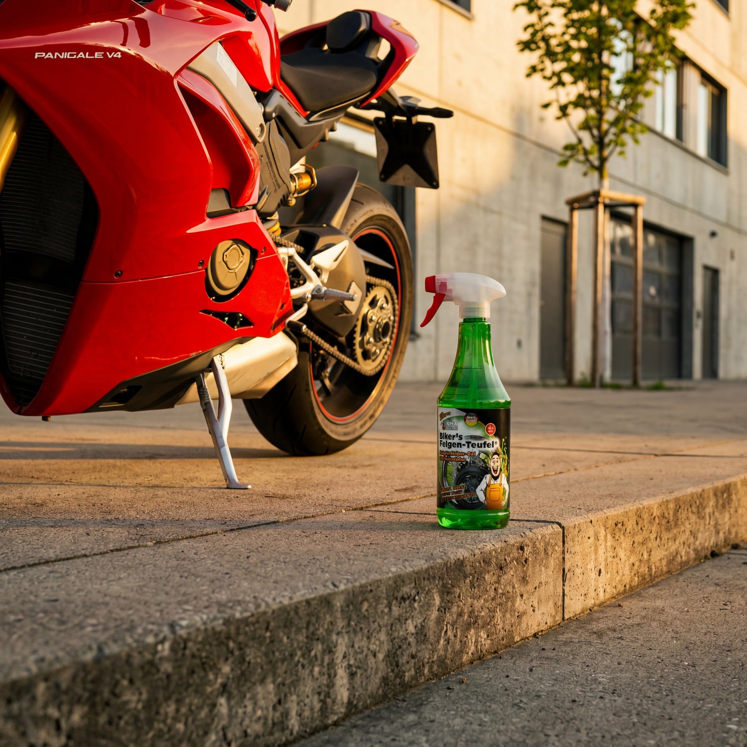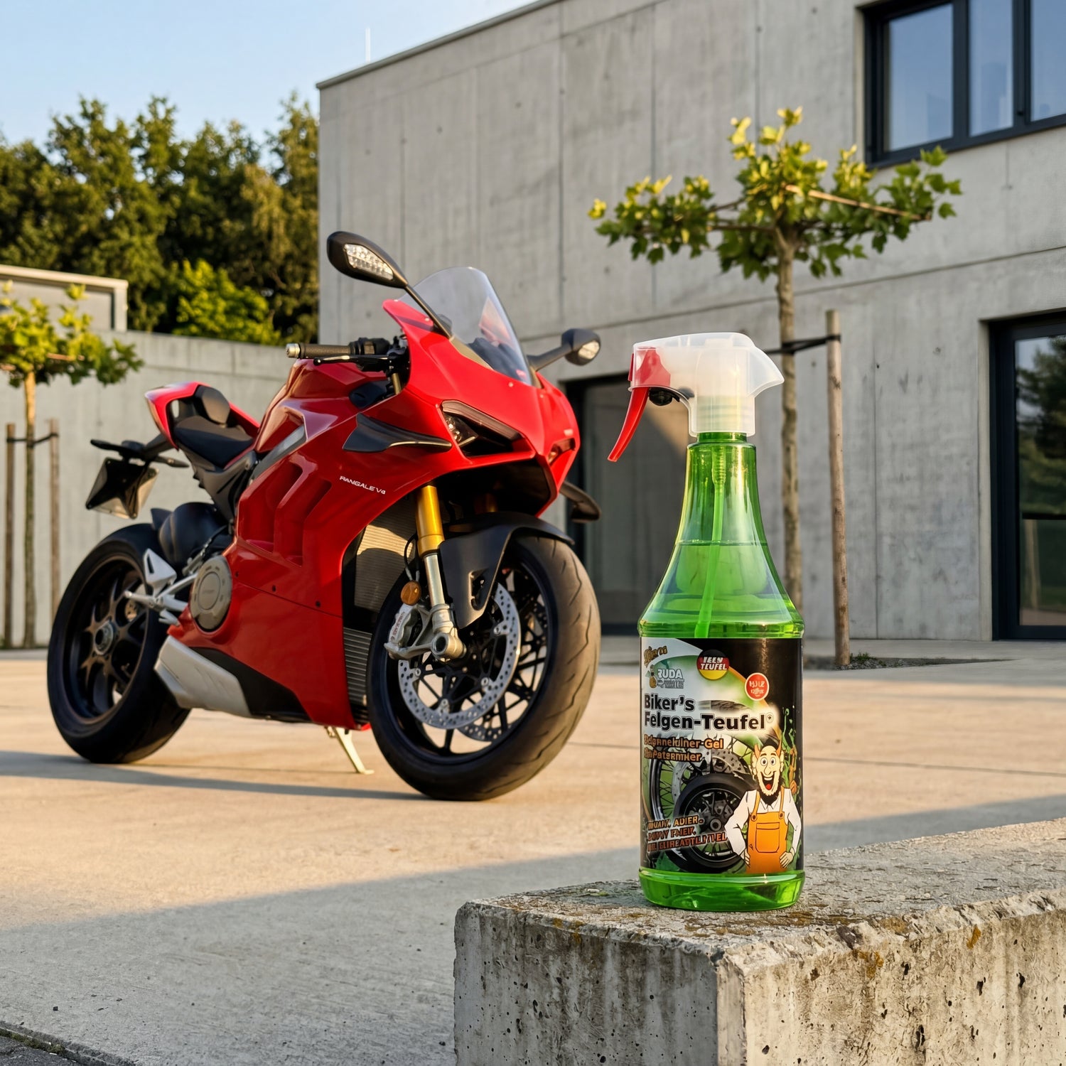 As a complete solution, combine this cleaner with Biker's Super-Teufel for the entire motorcycle surface: first the rims, then the tires, then the rest with the Super-Teufel. This is the complete wheel workflow in three steps – under 20 minutes per motorcycle with regular maintenance. The Super-Teufel also takes care of the difficult chain line before this product has its specialized use.