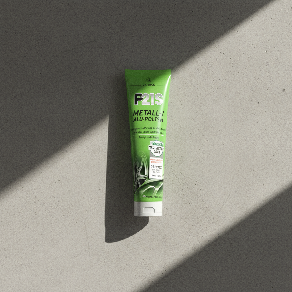 Nach der Anwendung hinterlässt das P21S Metall-/Alu-Polish eine hauchdünne Schutzschicht, die Witterungseinflüsse, Feuchtigkeit und Salzablagerungen abweist. Diese Schicht basiert auf polymeren Schutzwirkstoffen, die das blanke Metall vor erneuter Korrosion schützen. Besonders bei häufig gereinigten oder stark beanspruchten Fahrzeugteilen (z. B. Felgen oder Endrohre) lohnt es sich, die Politur regelmäßig anzuwenden – etwa alle zwei bis drei Monate. In Kombination mit dem P21S Felgenreiniger POWER GEL erzielst du ein optimales Gesamtergebnis, da der Reiniger groben Schmutz löst und die Politur anschließend die Oberfläche veredelt. Für das Abtragen empfehlen wir ein hochwertiges Mikrofasertuch oder Polierwatte, um Mikrokratzer zu vermeiden.