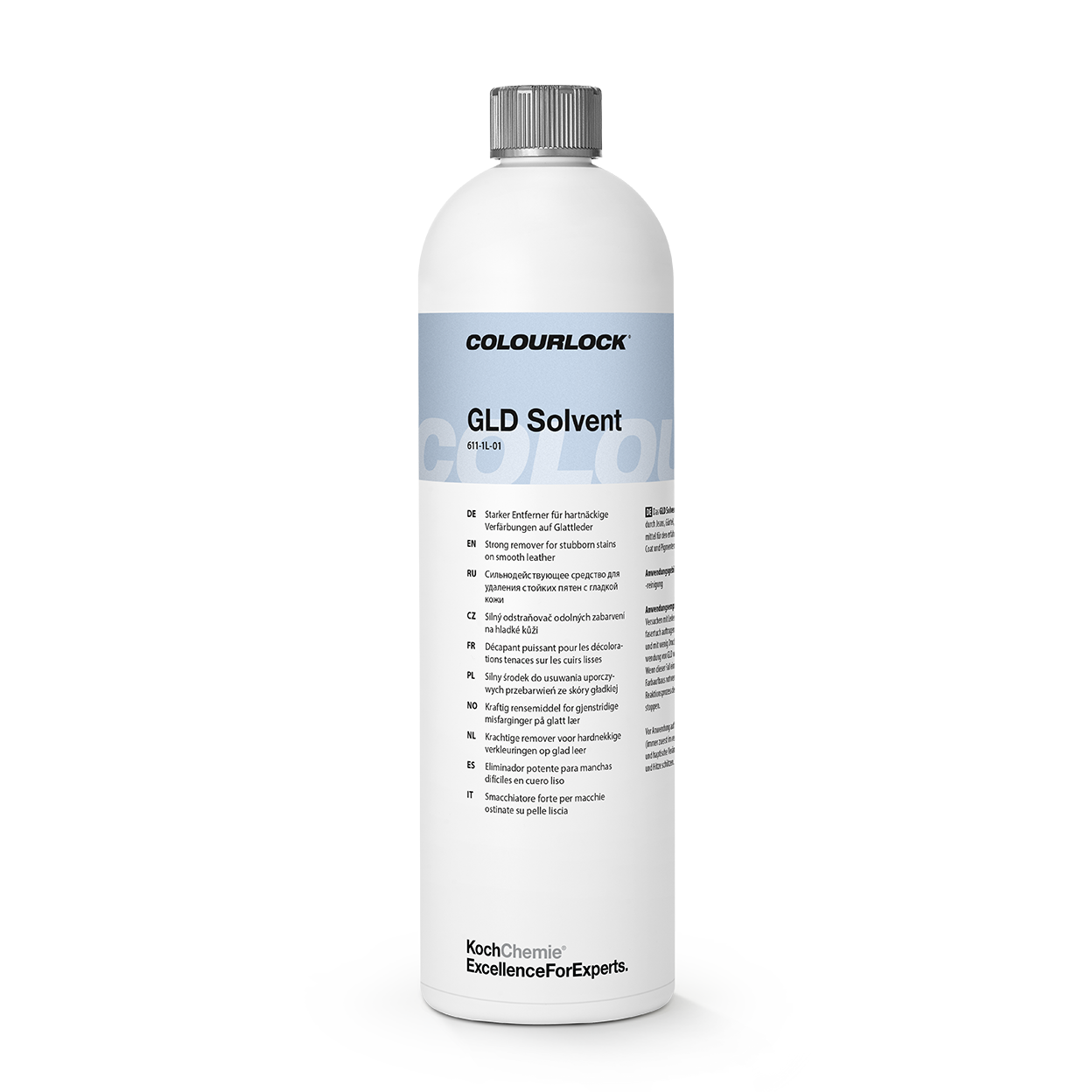 COLOURLOCK GLD Solvent ist ein professioneller Spezialentferner, der hartnäckige Verfärbungen, Farbübertragungen, Jeansabrieb und alte Beschichtungsreste auf pigmentiertem Leder anlöst. Die Lösung öffnet die oberste Farbschicht kontrolliert, sodass Verfärbungen abgetragen und die Oberfläche optimal für Reparaturen, Farbkorrekturen oder Neuversiegelungen vorbereitet werden kann. Besonders bei dunklem Farbtransfer auf Sitzwangen, Lenkrädern, Möbelkanten oder Taschen zeigt GLD Solvent seine volle Wirksamkeit. Das Produkt wird sparsam und gezielt eingesetzt, löst Rückstände sicher an und ermöglicht anschließend einen sauberen Neuaufbau mit Binder, Filler, Lederfarbe und Top Coat. GLD Solvent ist kein Alltagsreiniger, sondern ein präzises Profiwerkzeug für anspruchsvolle Lederreparaturen, bei denen herkömmliche Reiniger nicht mehr ausreichen.