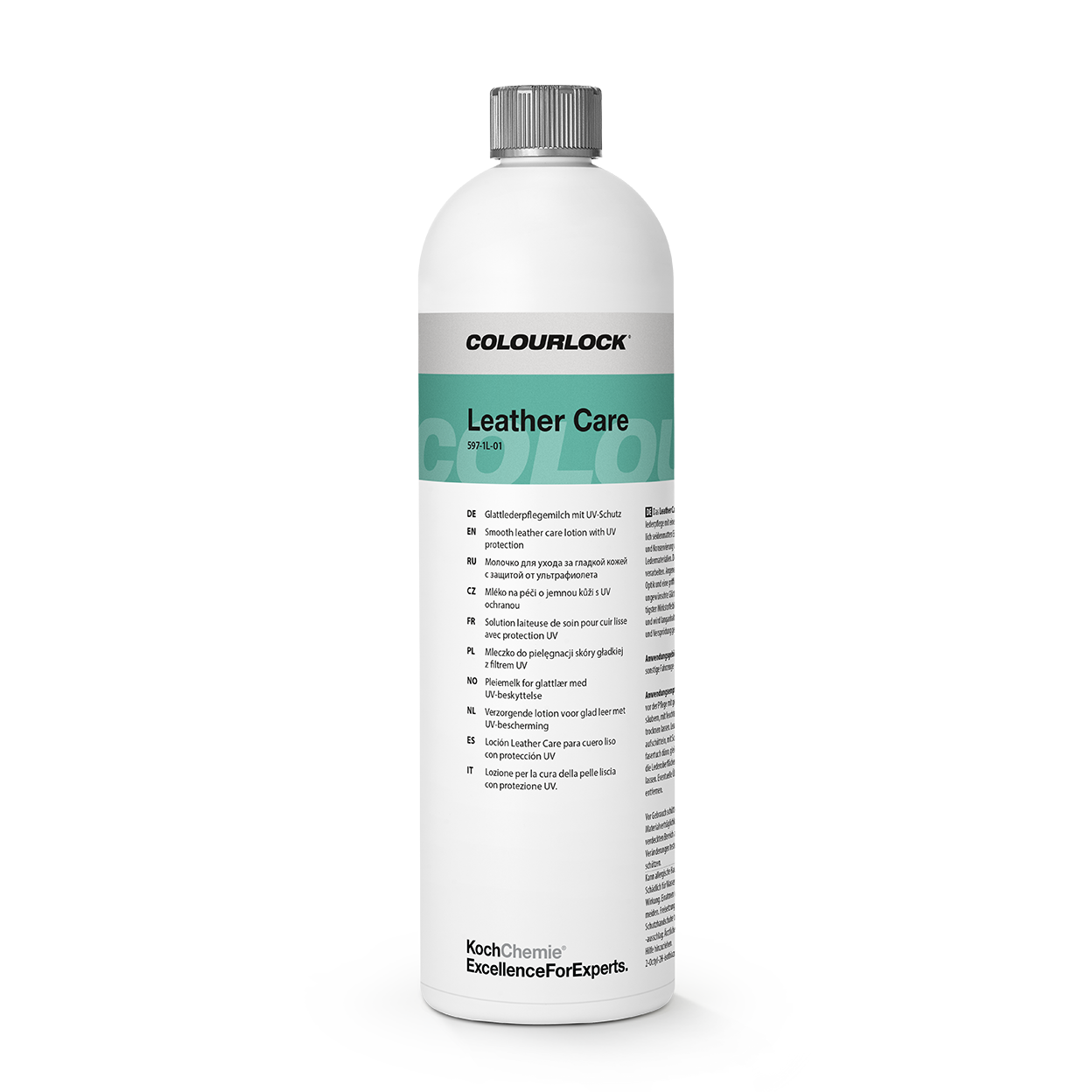 COLOURLOCK Leather Care ist eine hochwertige Pflegemilch für pigmentiertes Glattleder, die das Leder geschmeidig hält und es zuverlässig vor vorzeitiger Alterung schützt. Die ausgewogene Pflegeformel versorgt das Leder mit feuchtigkeitsspendenden Komponenten, ohne zu fetten oder einen speckigen Glanz zu hinterlassen. Gleichzeitig schützt der integrierte UV-Filter vor dem Ausbleichen durch Sonneneinstrahlung und starke Lichteinwirkung. Leather Care eignet sich ideal für Autositze, Lenkräder, Möbel, Taschen und andere stark genutzte Glattlederoberflächen. Nach der Anwendung fühlt sich das Leder weich, gepflegt und natürlich an, während Farbe und Struktur länger erhalten bleiben. Die Pflegemilch ist der perfekte Abschluss nach der Reinigung und eine effektive Maßnahme zum Werterhalt von hochwertigem Leder im Alltag und im Fahrzeuginnenraum.