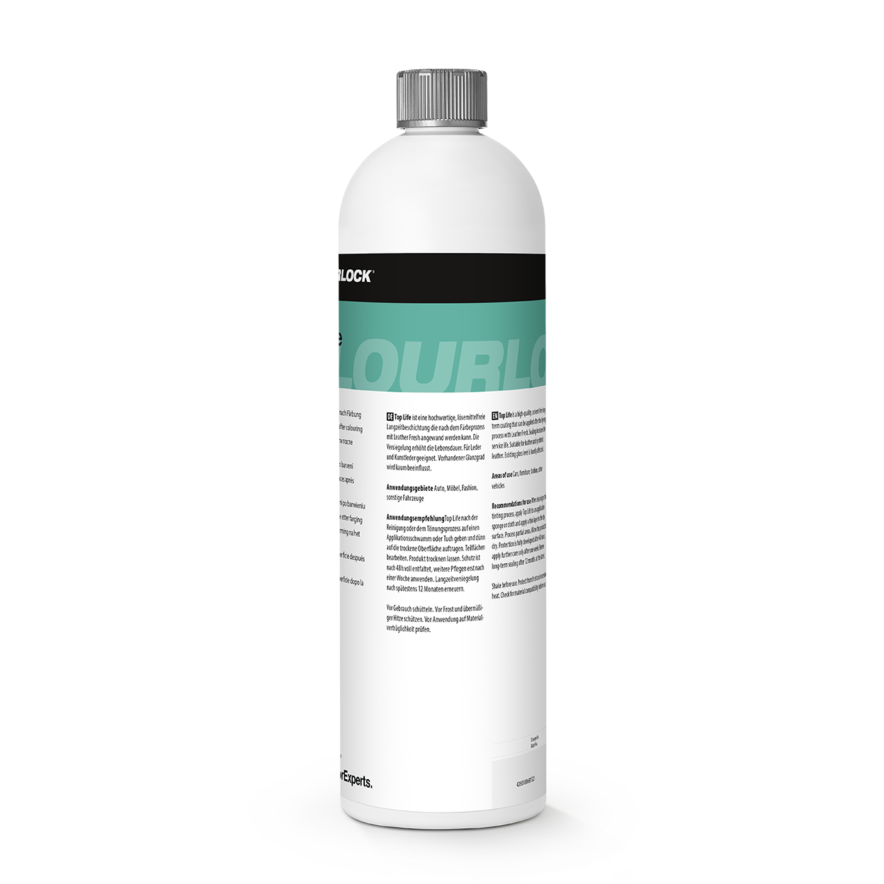 COLOURLOCK Top Life ist ein spezieller Oberflächenschutz, der nach dem Färben oder Auffrischen von Leder aufgetragen wird. Er bildet eine dünne, transparente Schutzschicht, die die neue Farbschicht fixiert und sie vor mechanischem Abrieb, Hautfetten, Schweiß und alltäglicher Beanspruchung schützt. Besonders bei frisch gefärbtem Leder sorgt Top Life dafür, dass das Ergebnis stabil bleibt, gleichmäßig altert und seine Optik länger bewahrt.